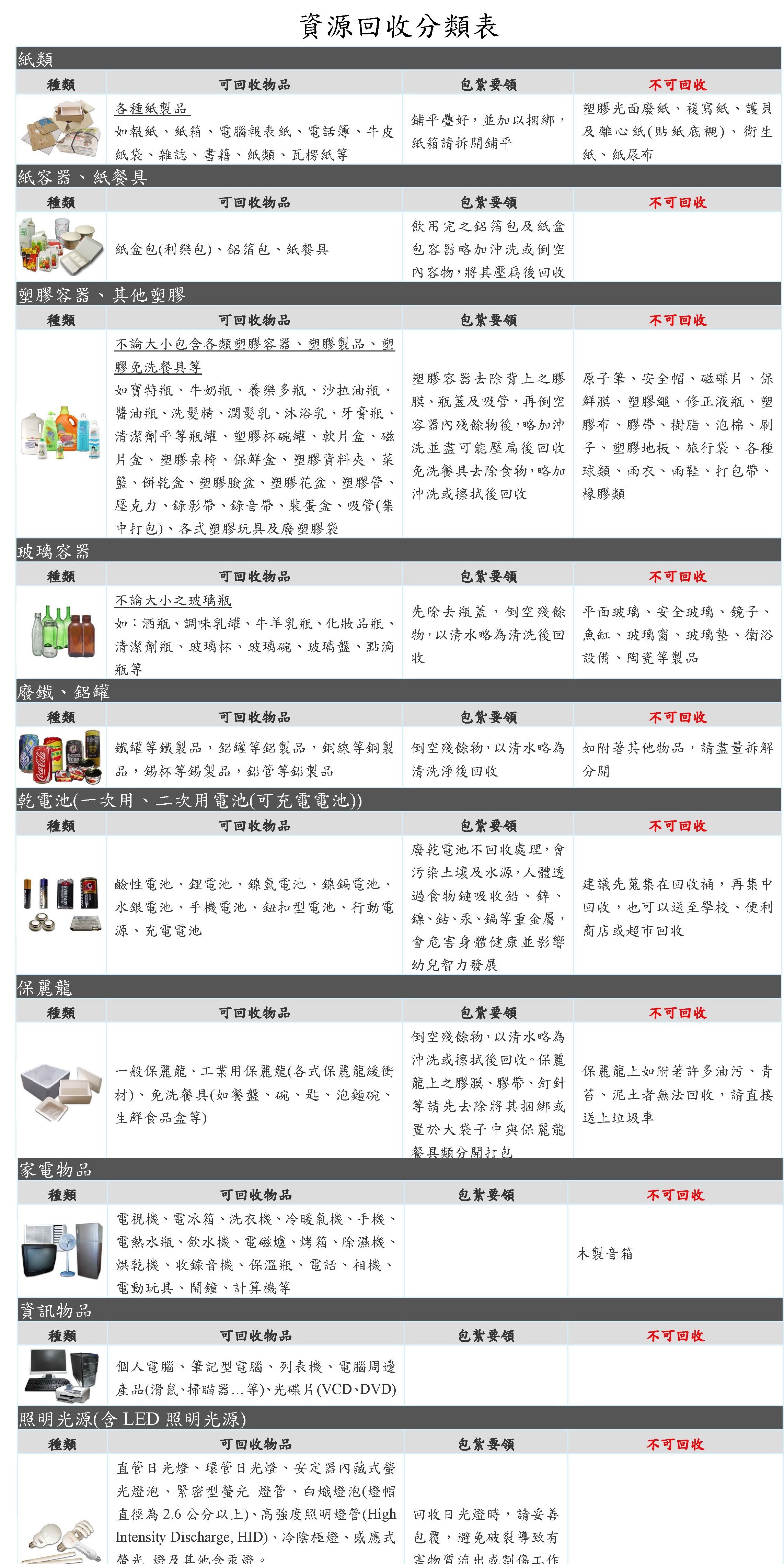 資源回收分類表